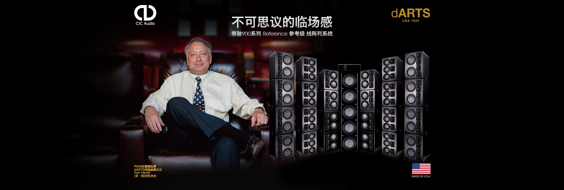 • 美國 dARTS? 帝馳 享譽全球的私人影院品牌,1955年創立,采用蜂巢&玻纖三層復合單元,DSP數字聲場處理功放等技術,被美國《寬銀幕》雜志評為2017年度推薦影院。